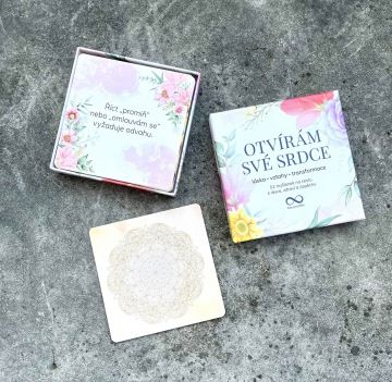 Karty "OtvÍrám své srdce" ti nabídnou podporu a ispiraci na cestě ke zralé dospělosti a vědomému životu. Přeji ti na této cestě hodně odvahy, kterou všichni potřebujeme k tomu, abychom přehodnotili pohled na sebe a přijali odpovědnost za situace, do kterých se dostáváme. Abychom nečekali na to, co vnesou do našeho života druzí, ale tvořili svoji realitu vědomě a s úctou k principům, jež nás přesahují.